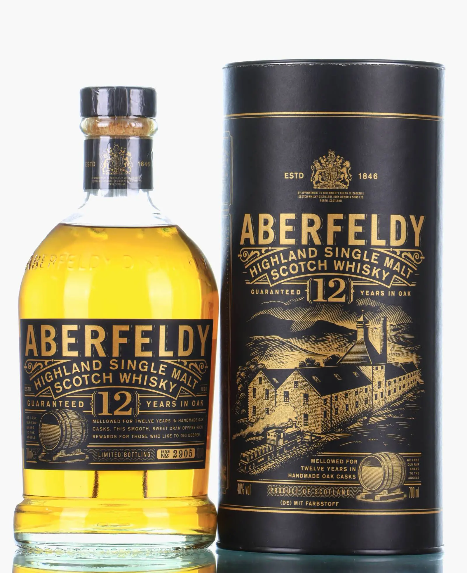 A classic Highland dram, Aberfeldy 12 Year Old single malt whisky is a creamy, sweet and gently smoky example of what the region produces. Bolstered by plenty of Aberfeldy’s signature honeyed fruit character, this makes for a superbly laid-back sipper. The label comes with a rather handsome black and rose-gold colour palate to match the rich, malty, honey flavour profile.