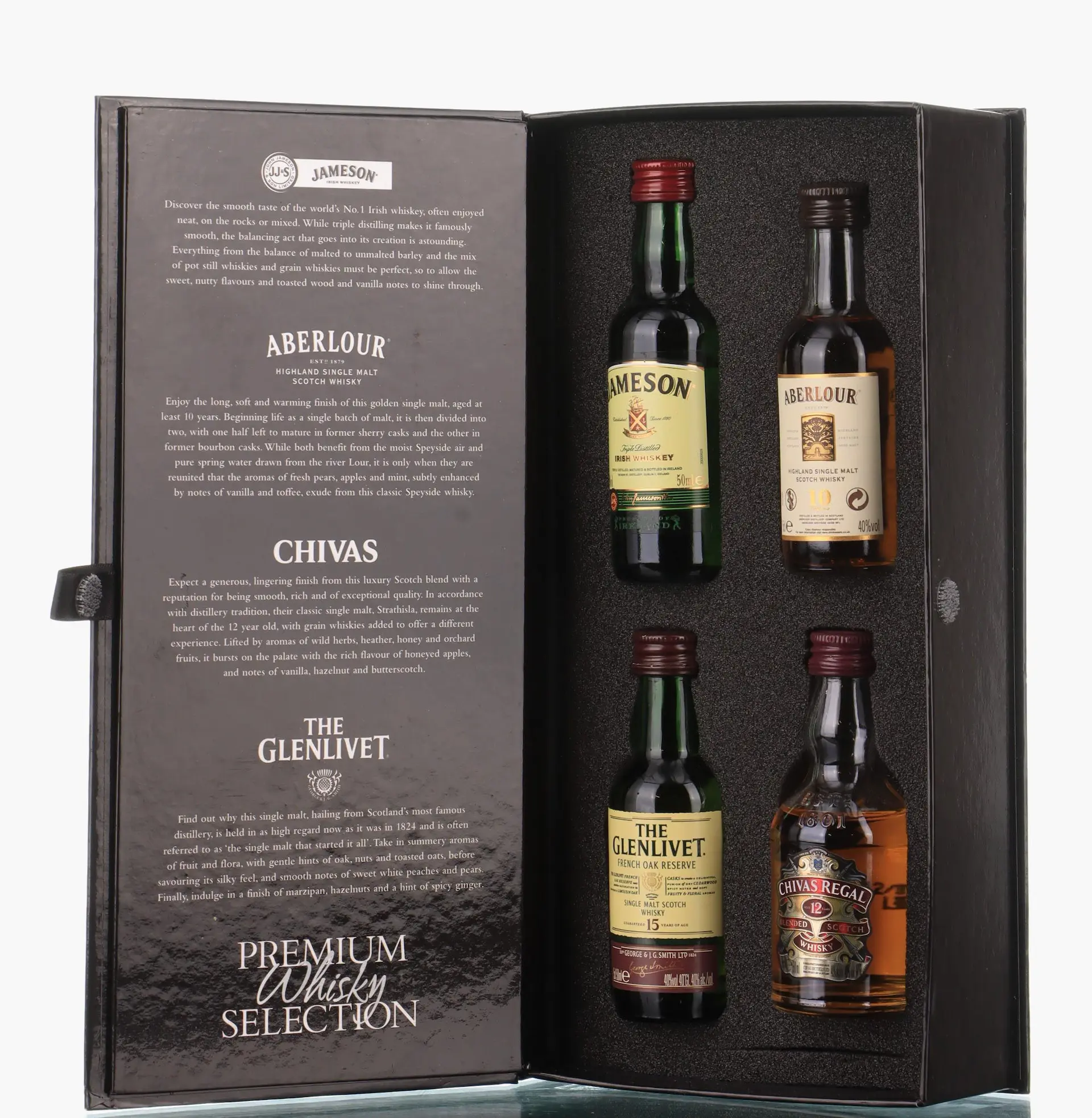 The Premium Whisky Selection is the perfect gift for someone who likes a dram or two, or a great tasting starter pack if you would like to try from four different distilleries. This box contains drams from Chivas Regal The Glenlivet, Aberlour and Jameson.